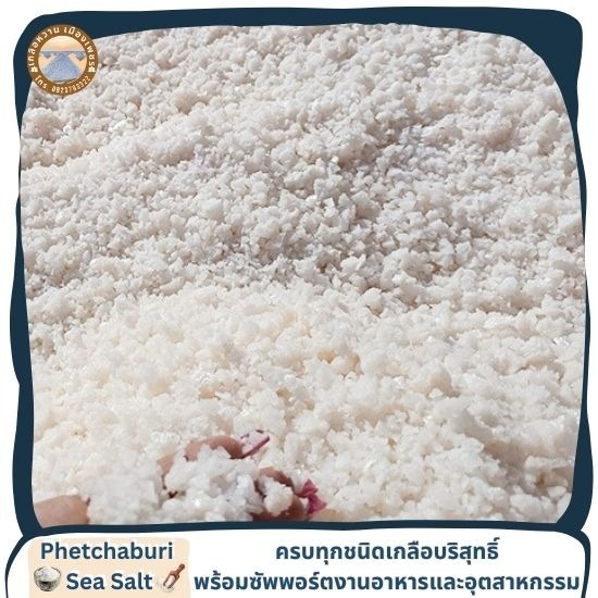 - ขายส่งดอกเกลือ (Fleur de Sel) เกลือเกรดพรีเมี่ยม สำหรับงานอาหารพิเศษ เกิดจากผลึกเกลือชั้นบนสุดของบ่อเกลือ มีเนื้อฟู เม็ดละเอียด และให้รสกลมกล่อมไม่ฝาด เหมาะสำหรับโรงงานผลิตอาหารคุณภาพสูงที่ต้องการสร้างจุดขายด้านรสชาติ